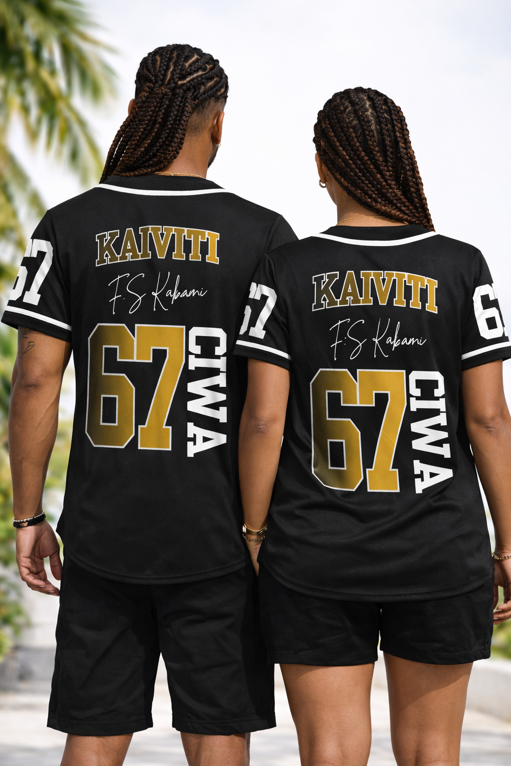 Bold, commanding, and rooted in island identity this all-over-print baseball jersey is built to represent strength, pride, and legacy. Featuring a striking black base with metallic-gold detailing, oversized vertical typography, and the powerful 67CIWA insignia, this piece fuses athletic tradition with street-luxury energy.